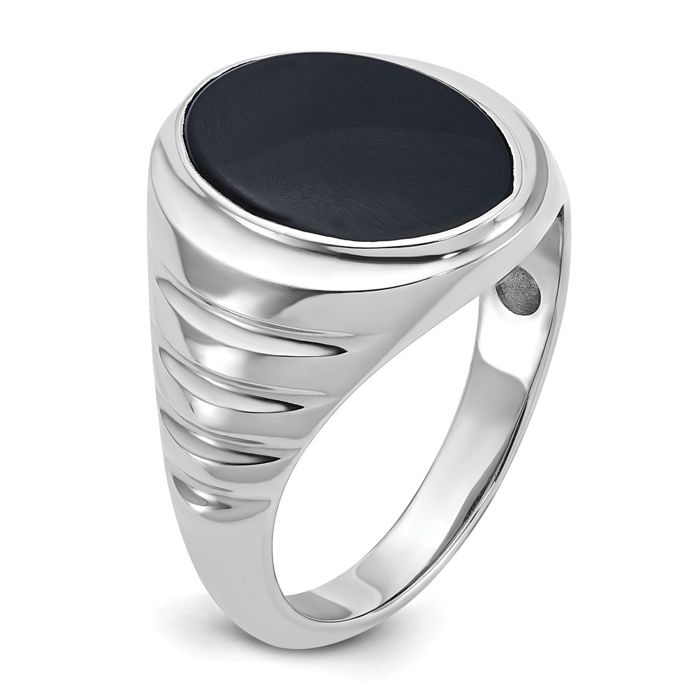 14k White Gold IBGoodman Men’s Oval Onyx Complete Ring