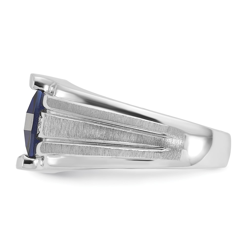14k White Gold IBGoodman Men’s Satin Created Sapphire and Diamond Complete Ring