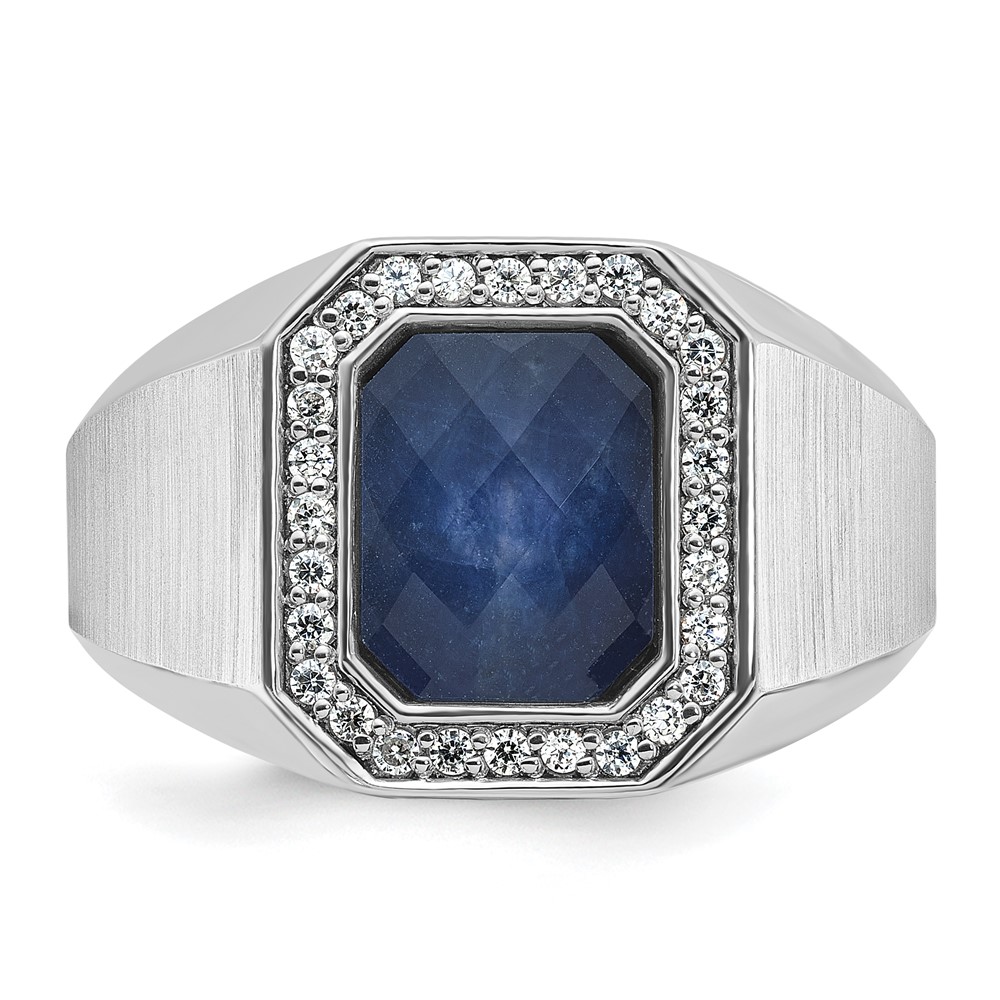 14k White Gold IBGoodman Men’s Satin Sapphire Doublet Stone and 1/4 carat Diamond Complete Ring