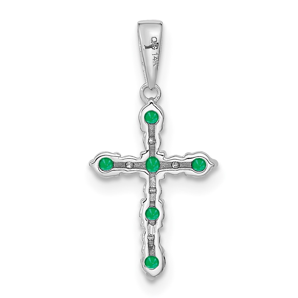 14k White Gold Lab Created Emerald and Diamond Cross Pendant