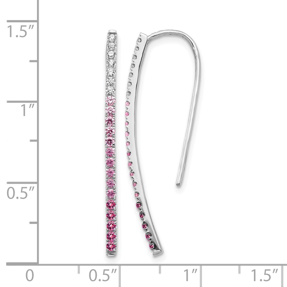 14k White Gold Ombre Pink Sapphire and Diamond Drop Wire Earrings