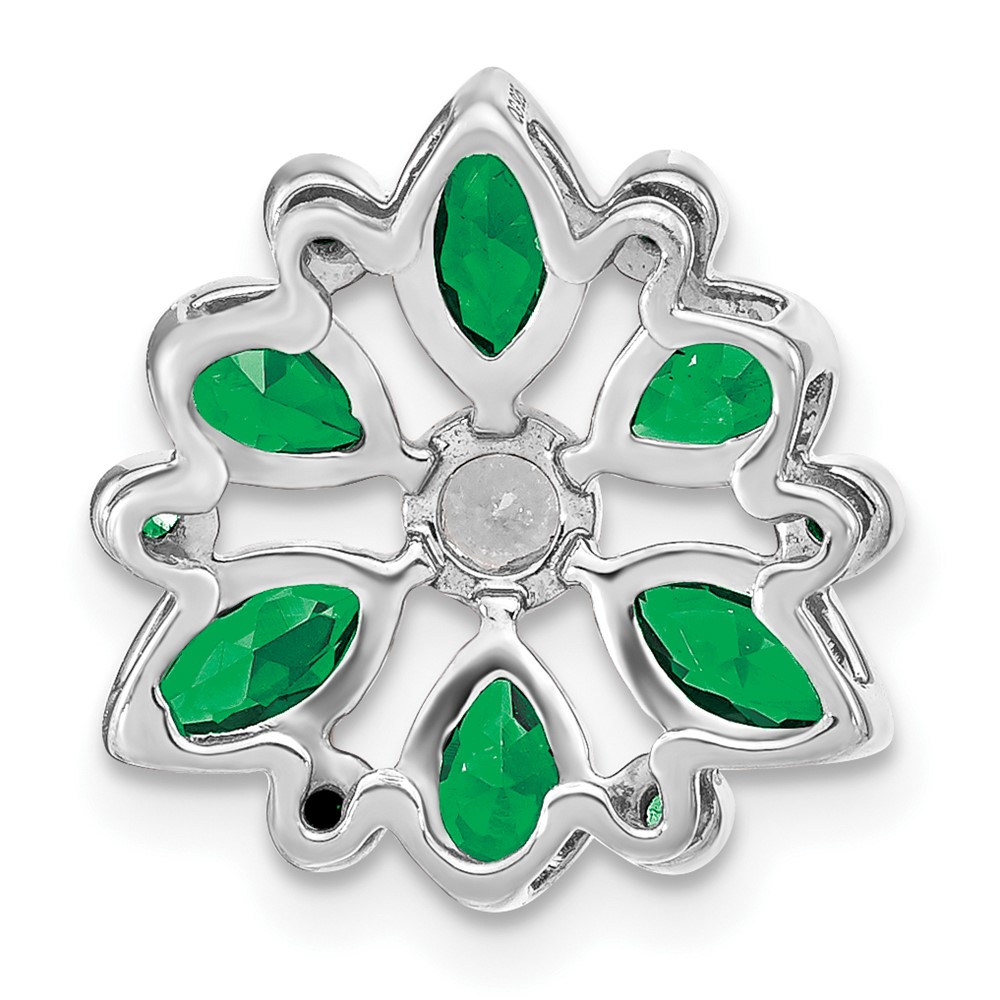 14k White Gold Pear and Marquise Emerald and Diamond Chain Slide