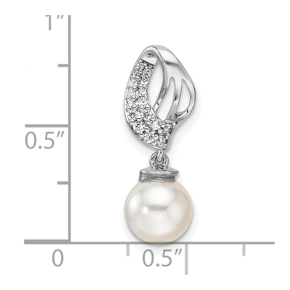14k White Gold 7-8mm Round White Freshwater Cultured Pearl and Diamond Chain Slide
