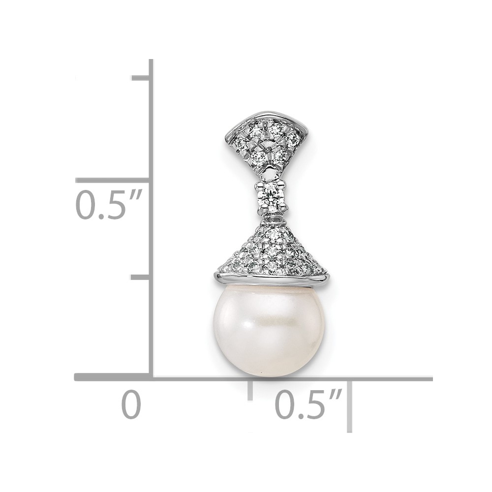 14k White Gold 7-8mm Round White Freshwater Cultured Pearl and Diamond Chain Slide
