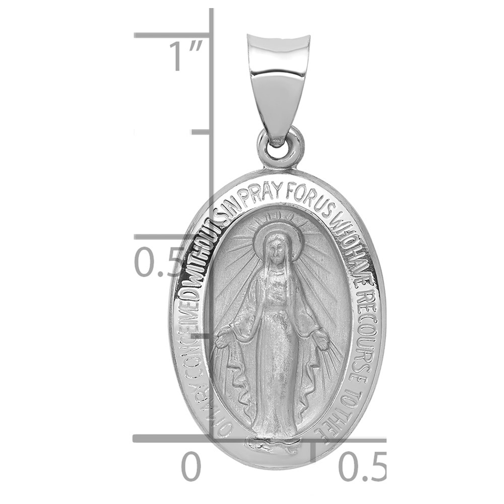 14k White Gold Polished and Satin Hollow Miraculous Medal Oval Pendant