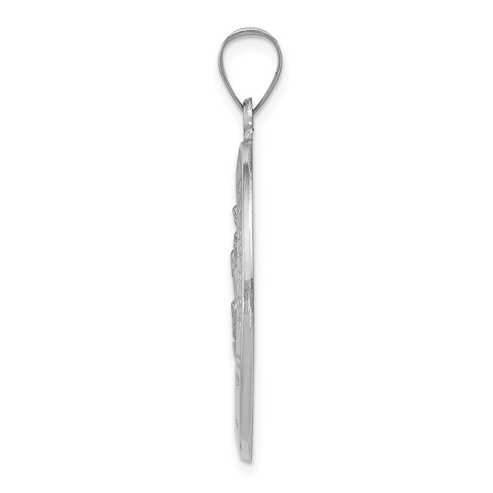 14k White Gold Polished and Satin Hollow St Christopher Medal Oval Pendant