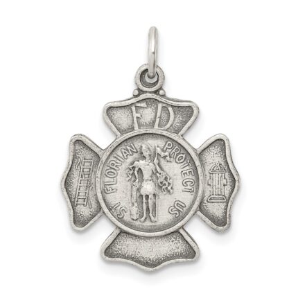 14k White Gold Polished and Satin Hollow St Florian Badge Medal Pendant
