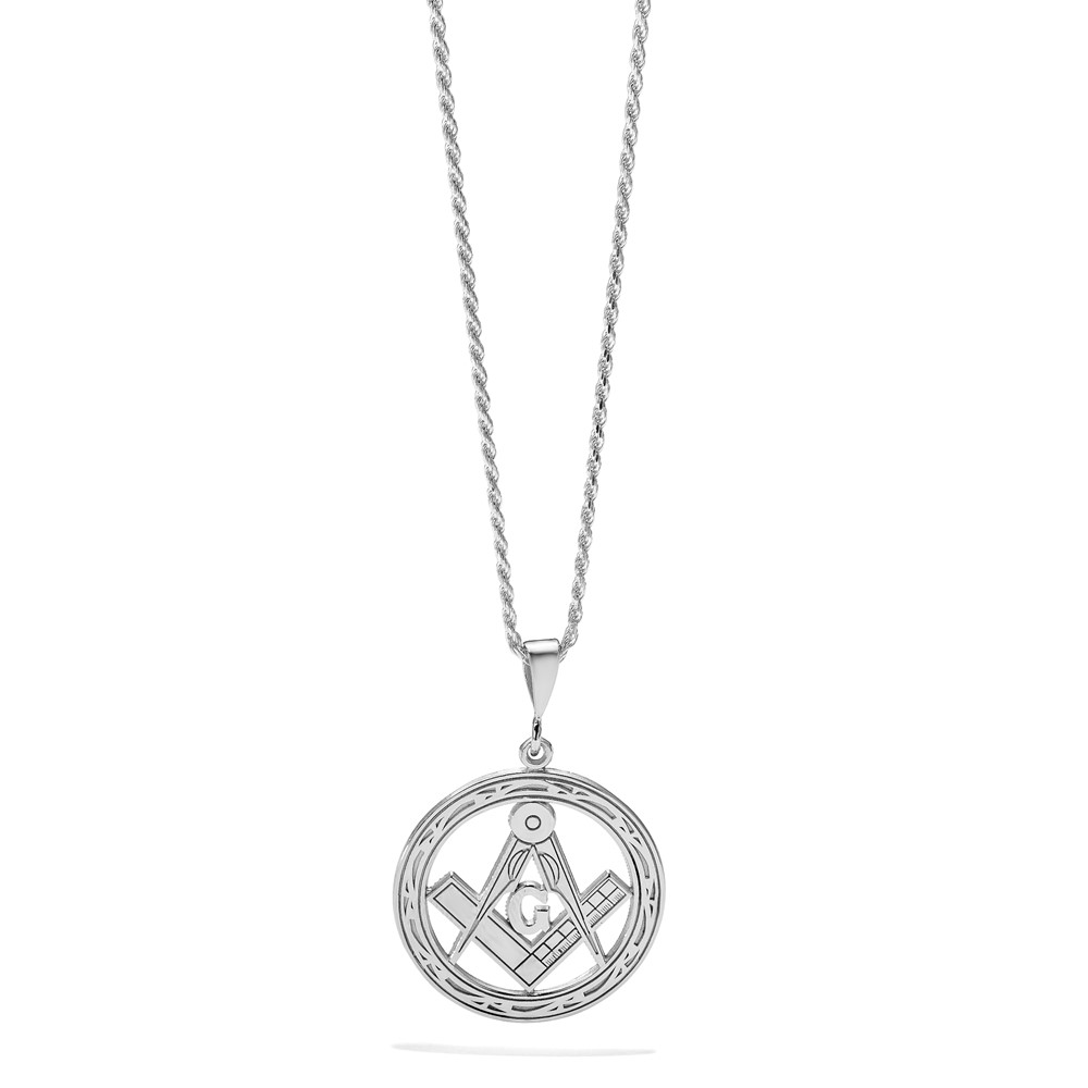 14k White Gold Polished and Textured Large Masonic Symbol Pendant