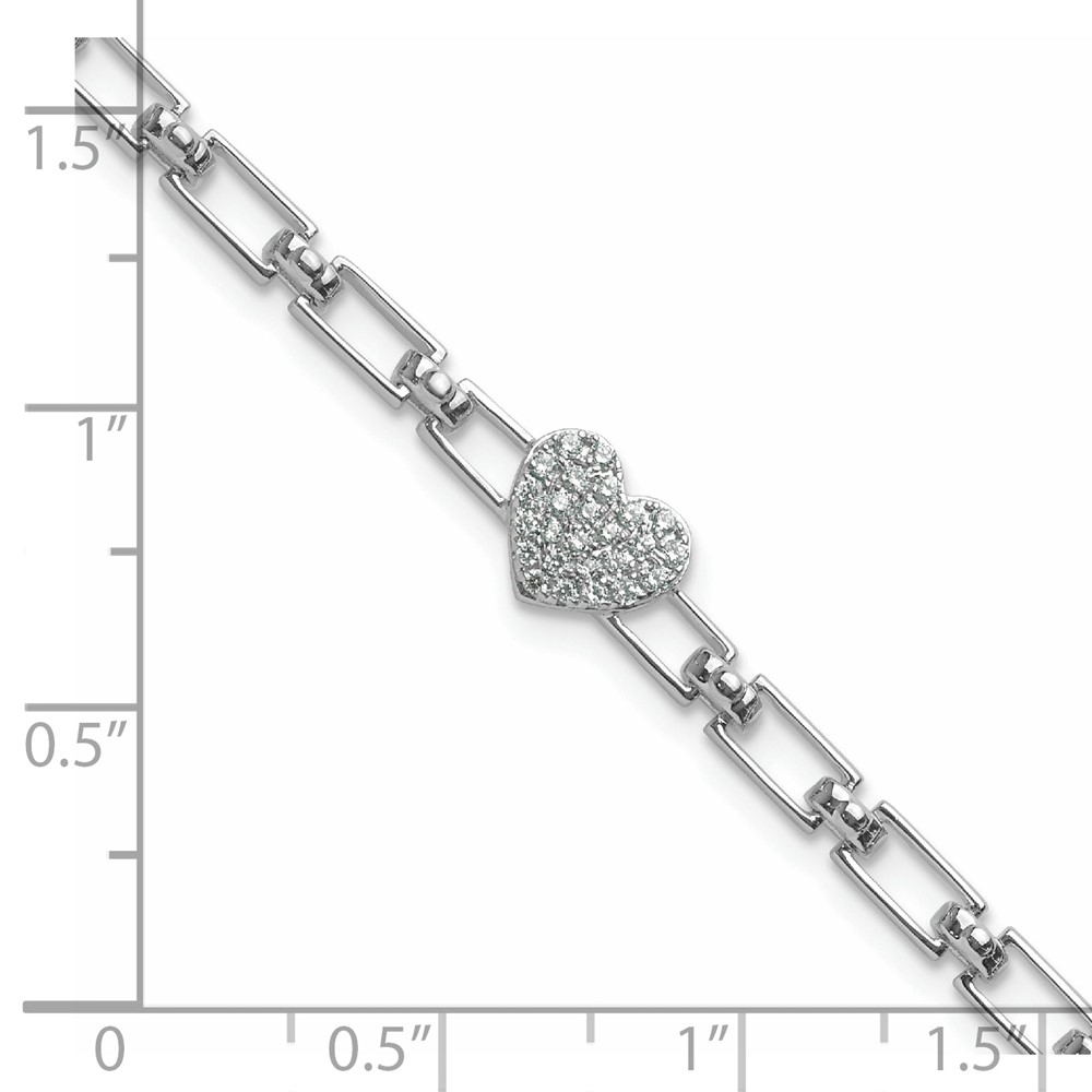 14K White Gold Polished Complete 1/6 carat Diamond Heart Cluster Fancy Link 7 inch Bracelet with 1 inch Extender
