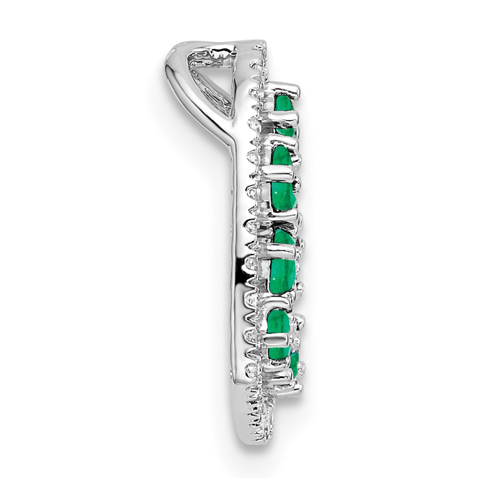 14K White Gold Polished Diamond and Emerald Heart Chain Slide