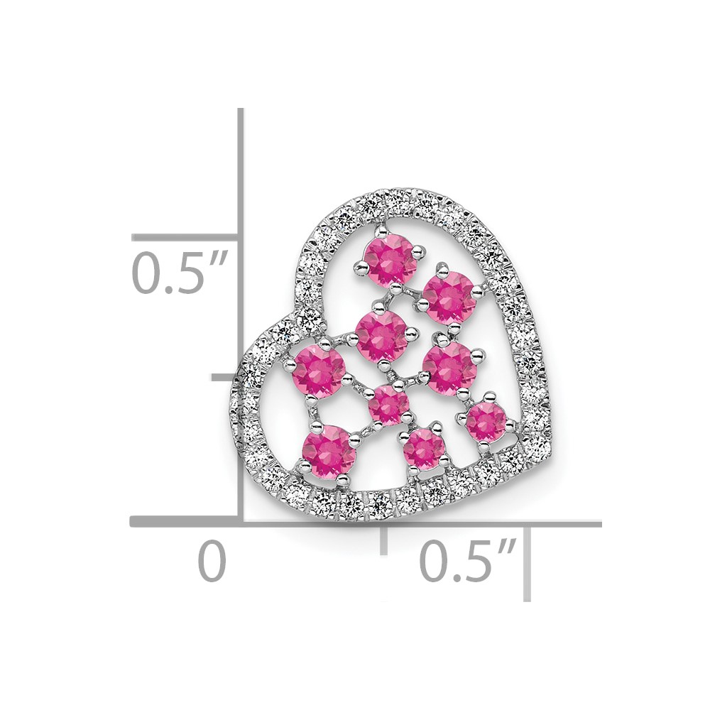 14K White Gold Polished Diamond and Pink Tourmaline Heart Chain Slide