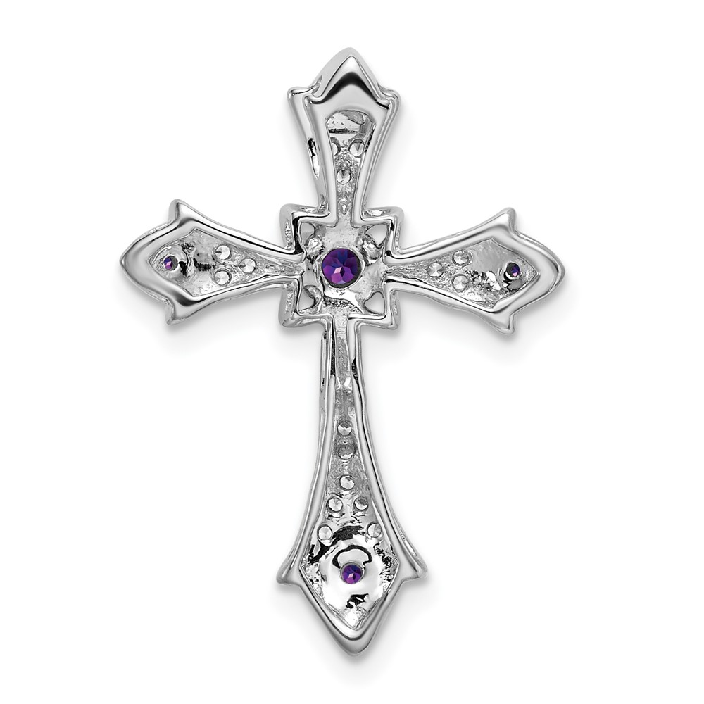14k White Gold Round Amethyst and Diamond Fleur de Lis Cross Chain Slide