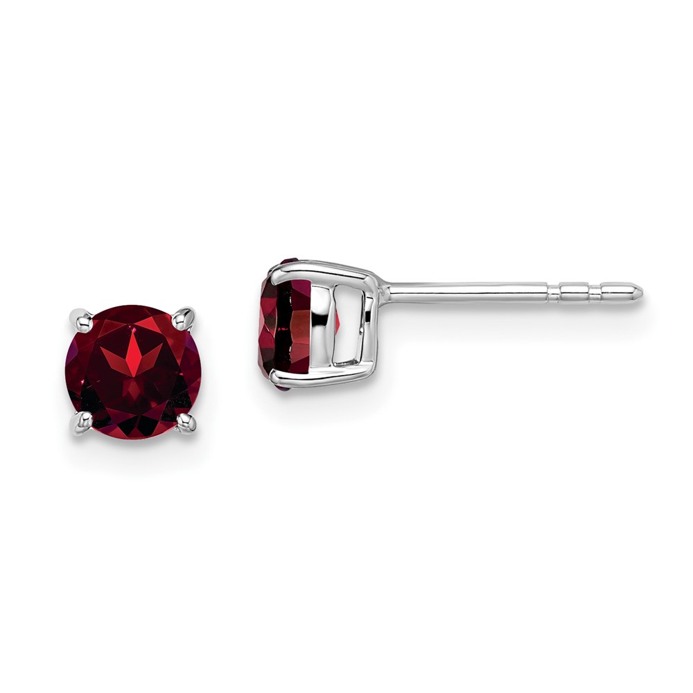14k White Gold 7mm Cushion Checkerboard January/Garnet and Diamond Post Earrings