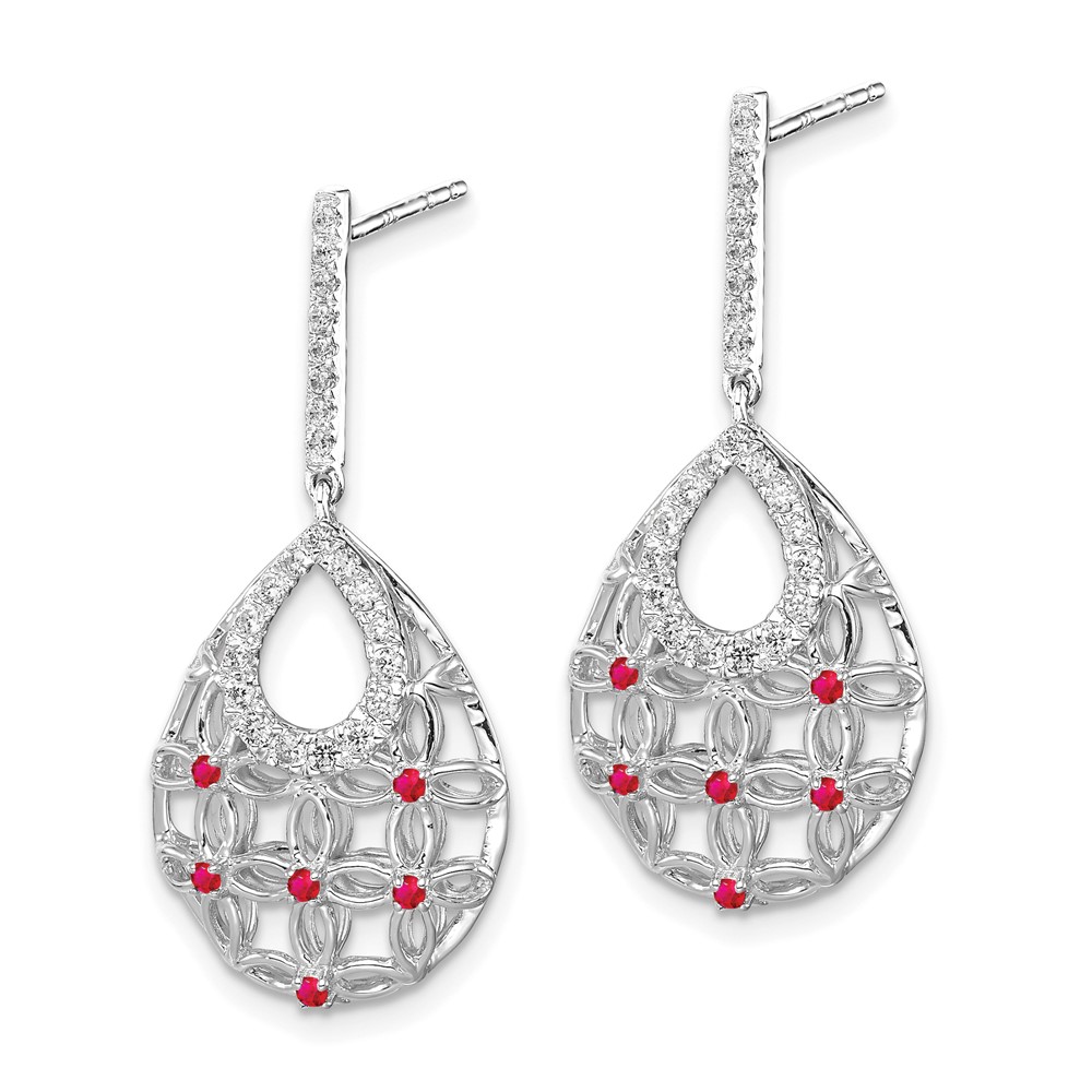 14k White Gold Ruby and Diamond Filigree Teardrop Dangle Post Earrings