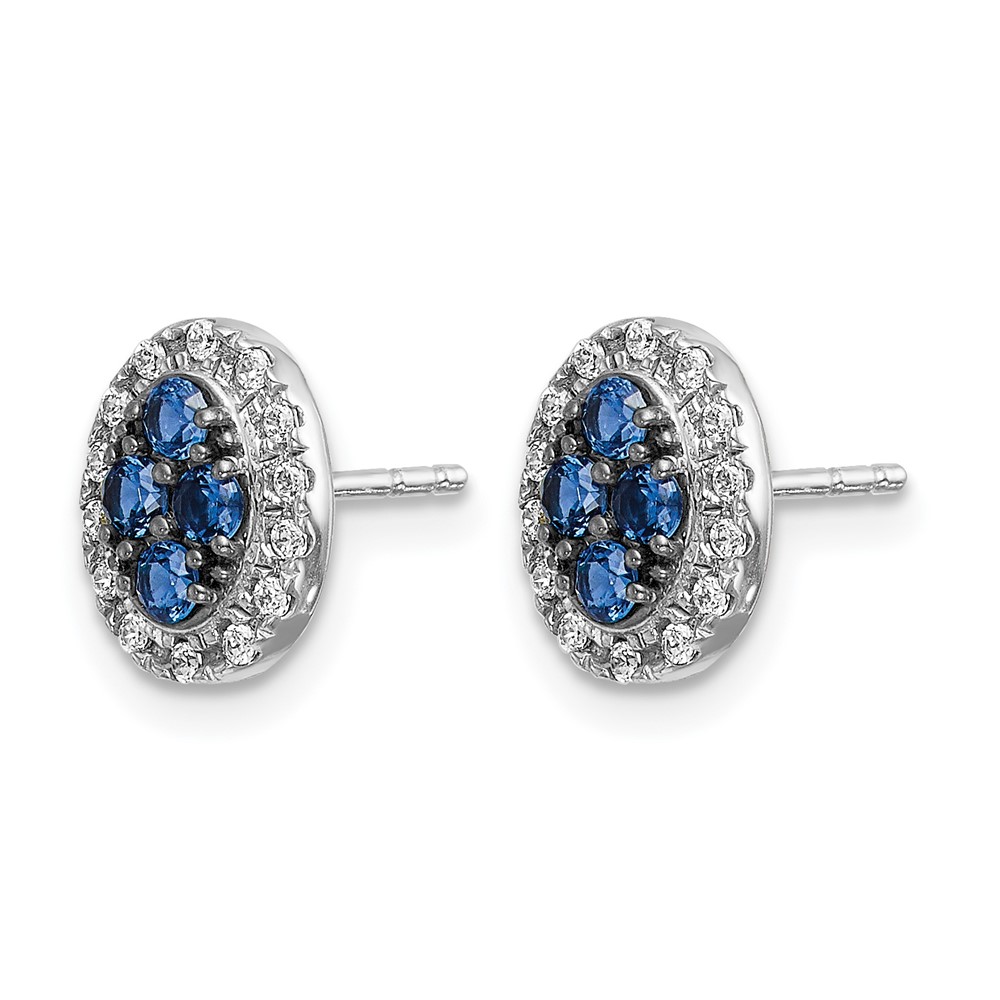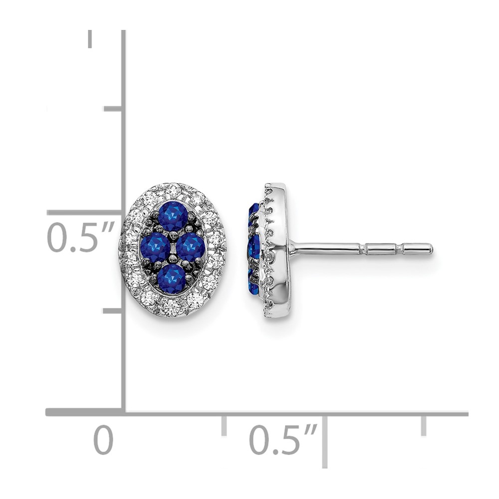 14k White Gold Sapphire Cluster and Diamond Halo Oval Post Earrings