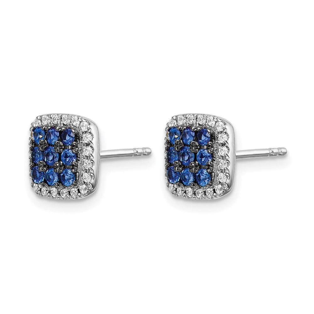 14k White Gold Sapphire Cluster and Diamond Halo Square Post Earrings