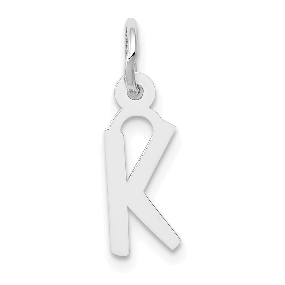 14K White Gold Small Slanted Block Letter K Initial Charm