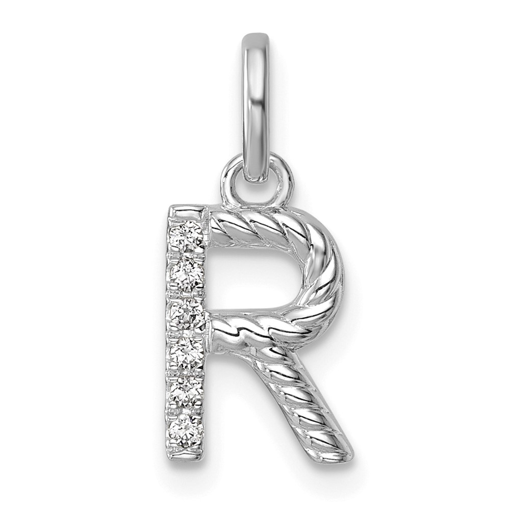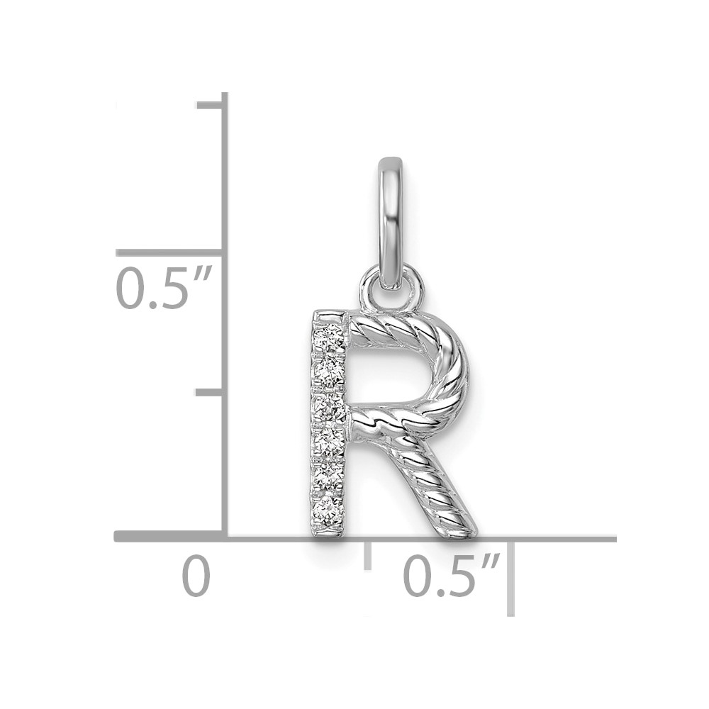 14k White Gold Twisted .05 ct. Diamond Initial R Charm