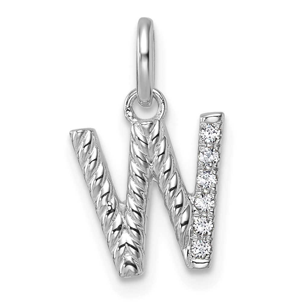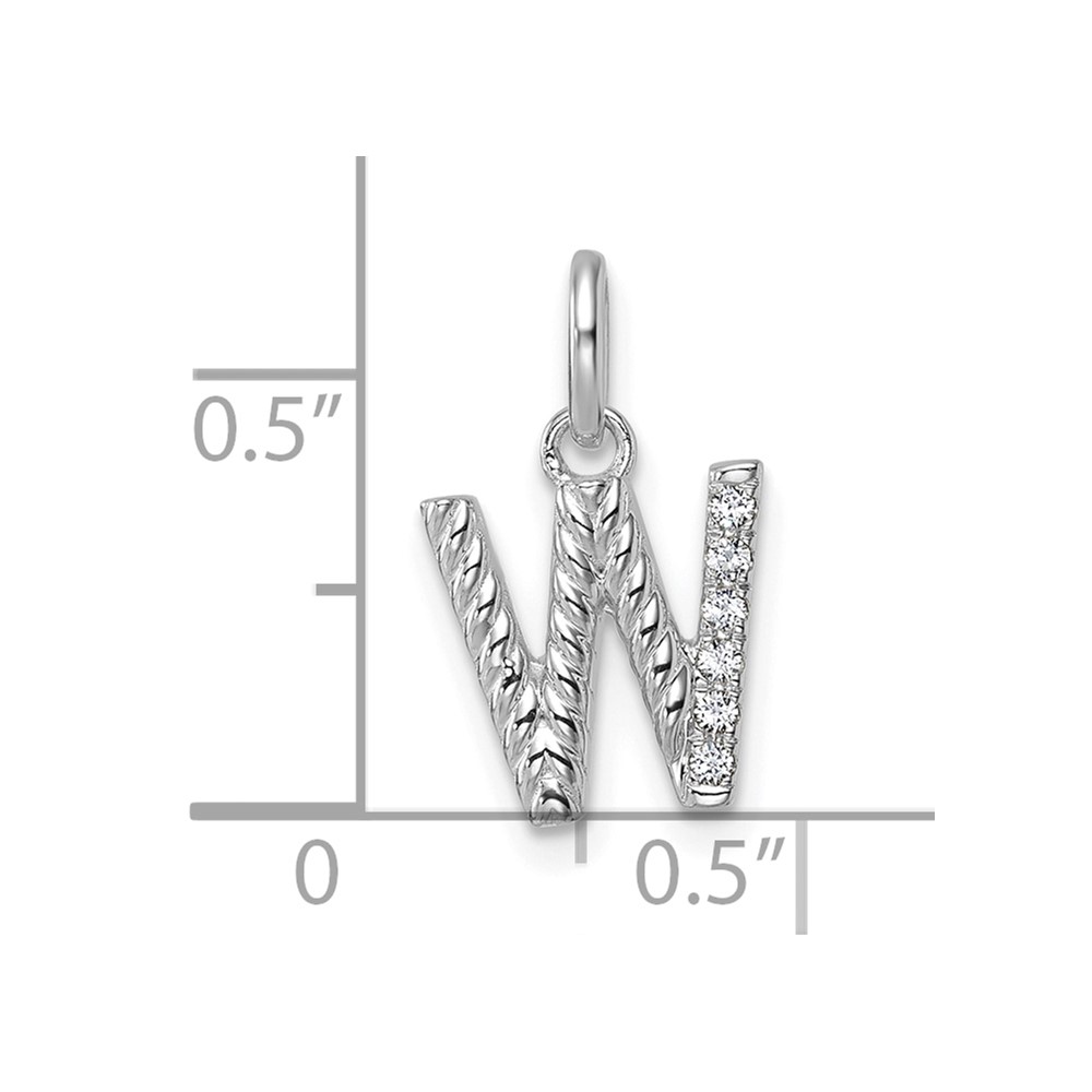 14k White Gold Twisted .05 ct. Diamond Initial W Charm