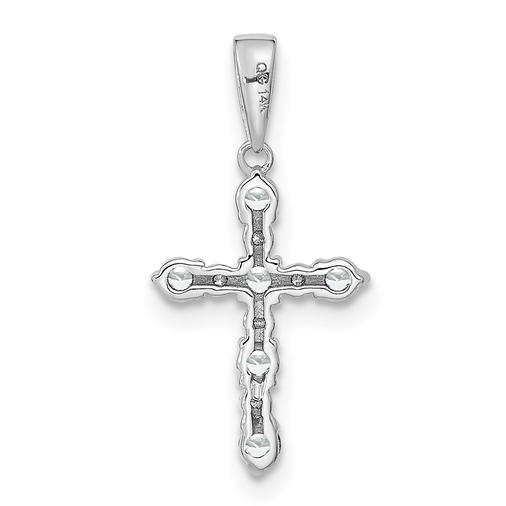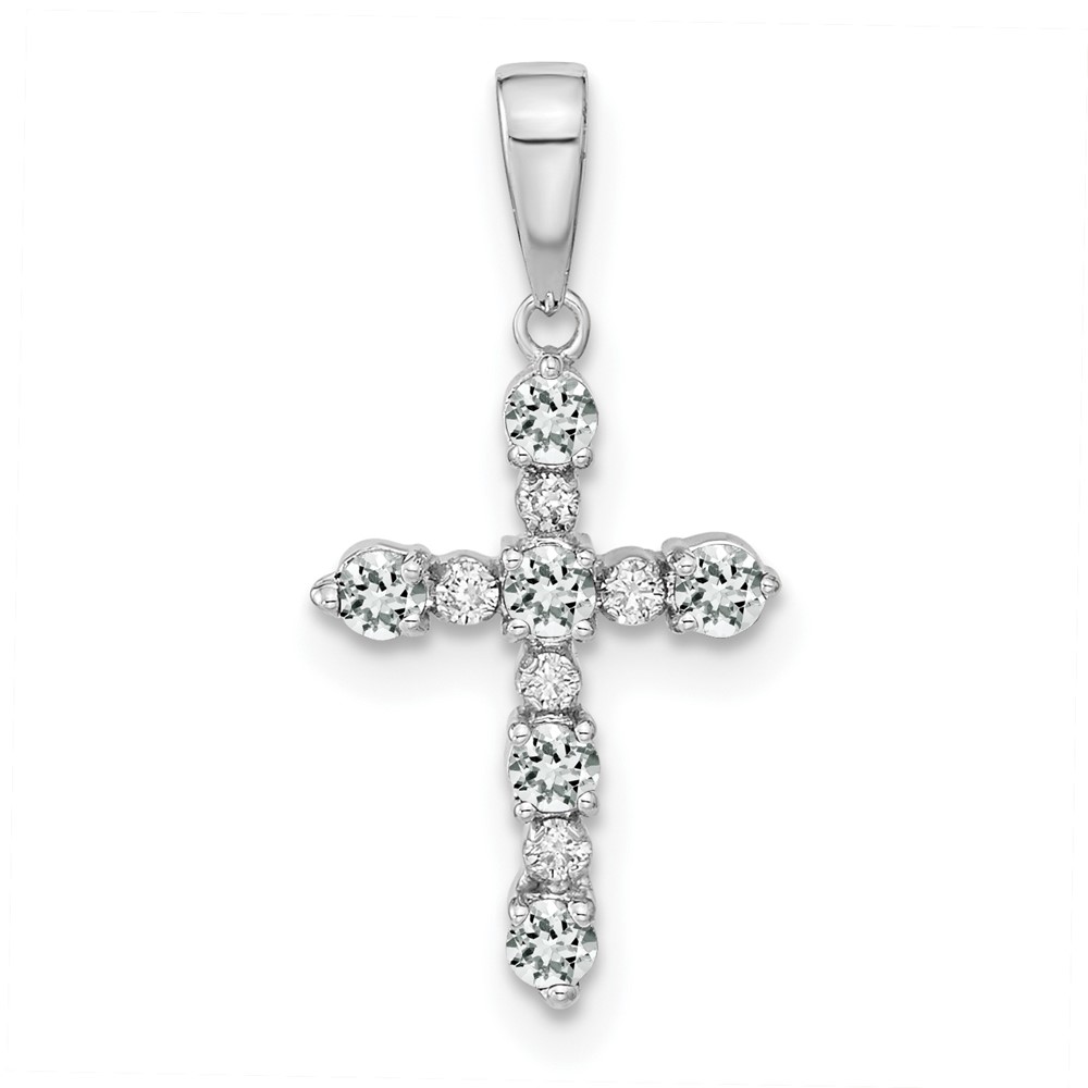 14k White Gold White Topaz and Diamond Cross Pendant