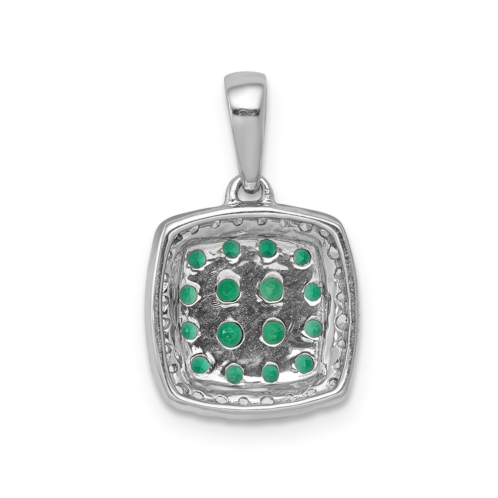 14k White Gold with Black Rhodium Diamond and .50 Emerald Cluster Square Halo Pendant