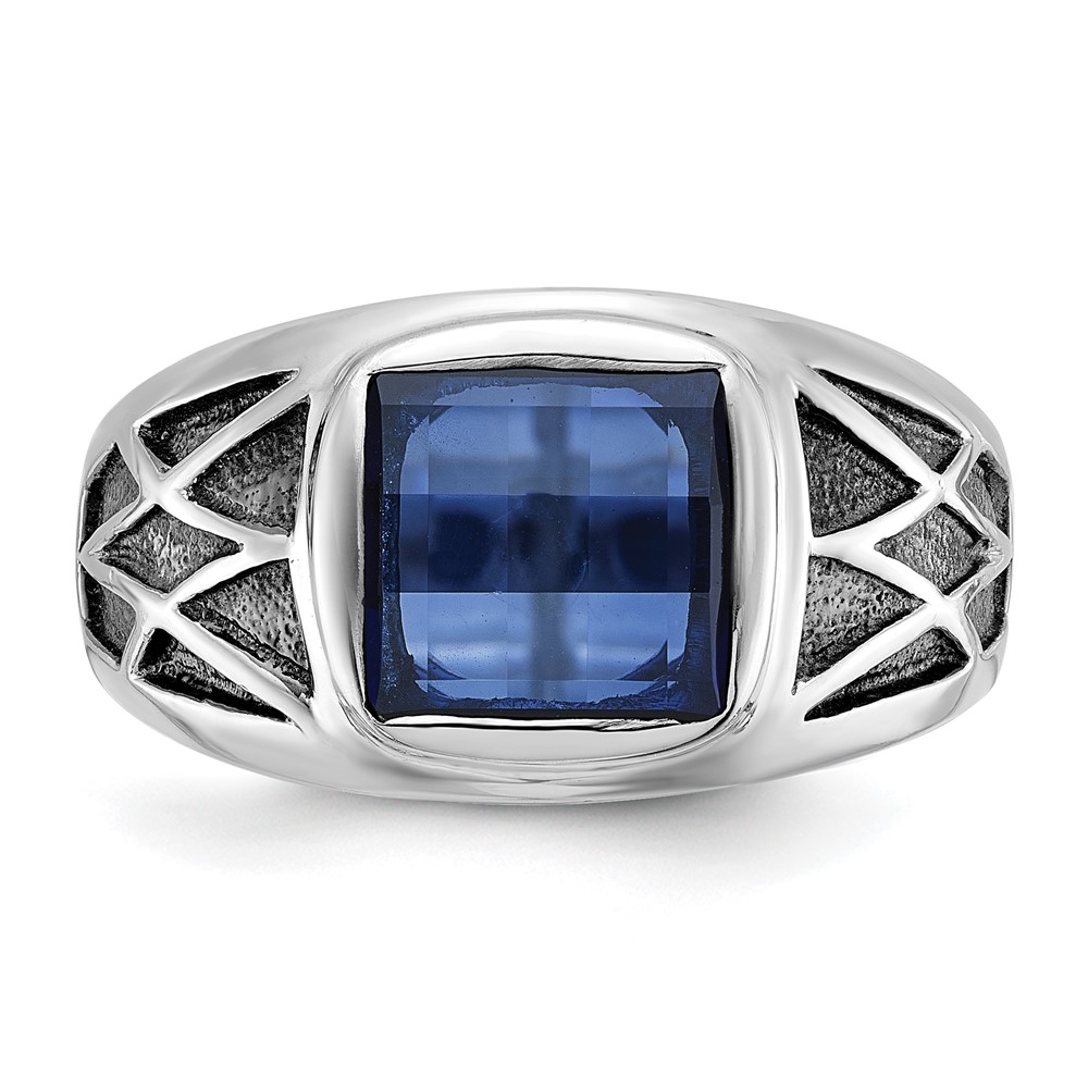 14k White Gold with Black Rhodium IBGoodman Men’s Created Sapphire Complete Ring