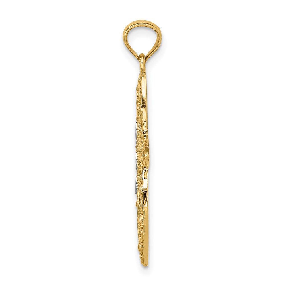 14K White Rhodium Diamond-cut Passion Cross Pendant