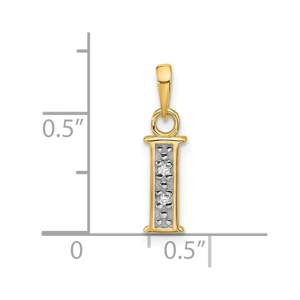 14K with Rhodium Diamond Letter I Initial Pendant
