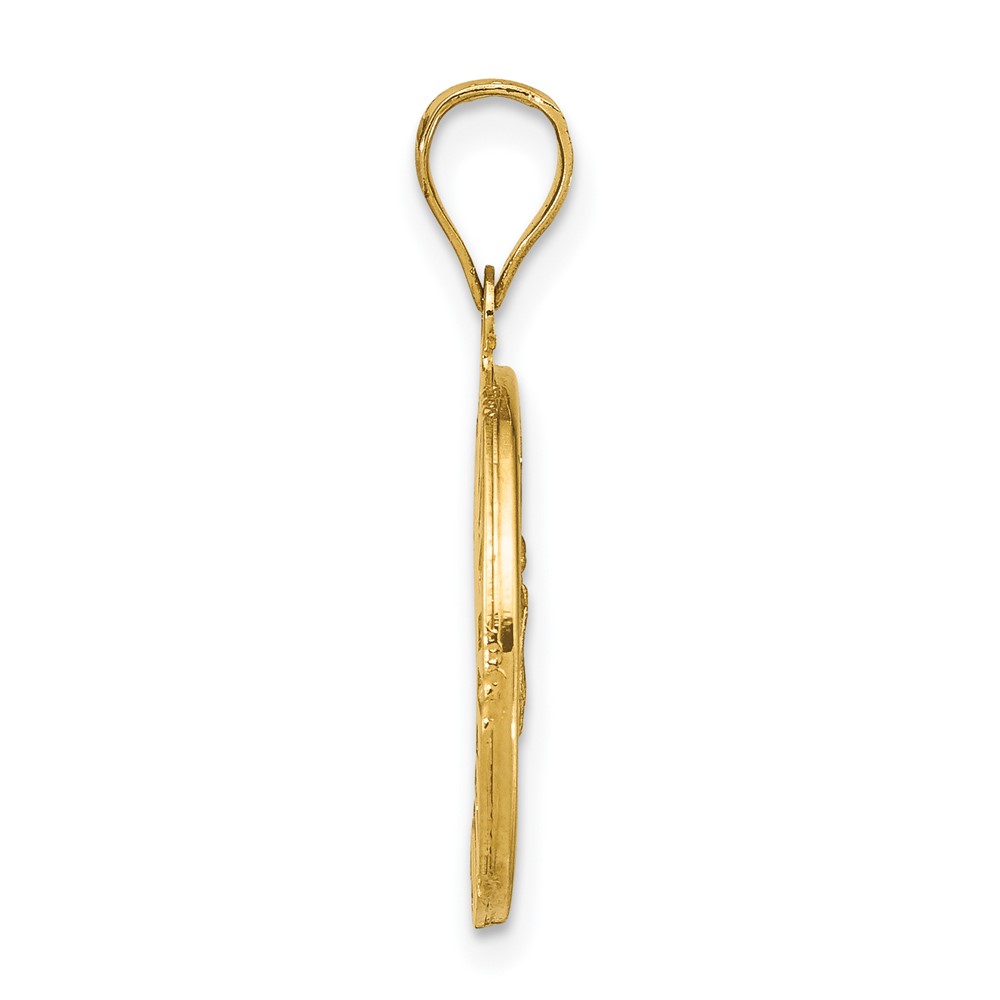 14K with Rose and White Rhodium Polished Baguette CZ Our Lady of Guadalupe Round Pendant