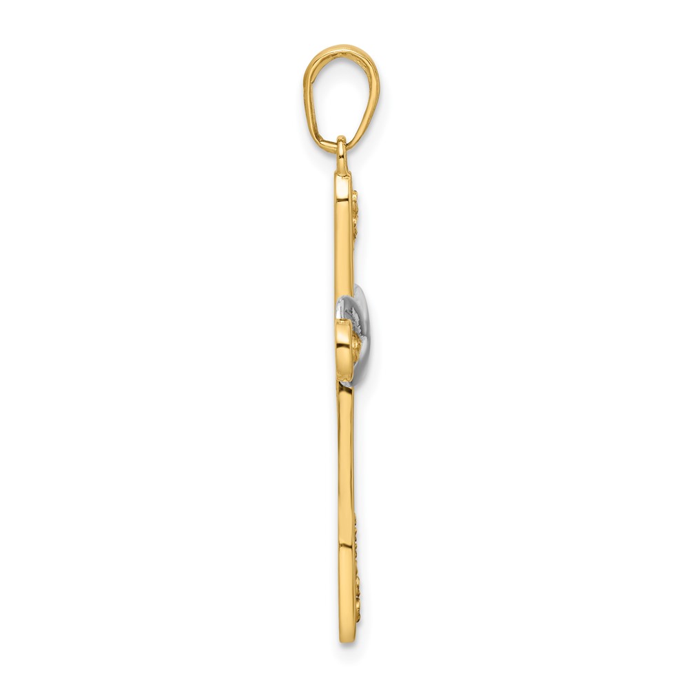 14K and White Rhodium Twist Diamond-cut Cross Pendant