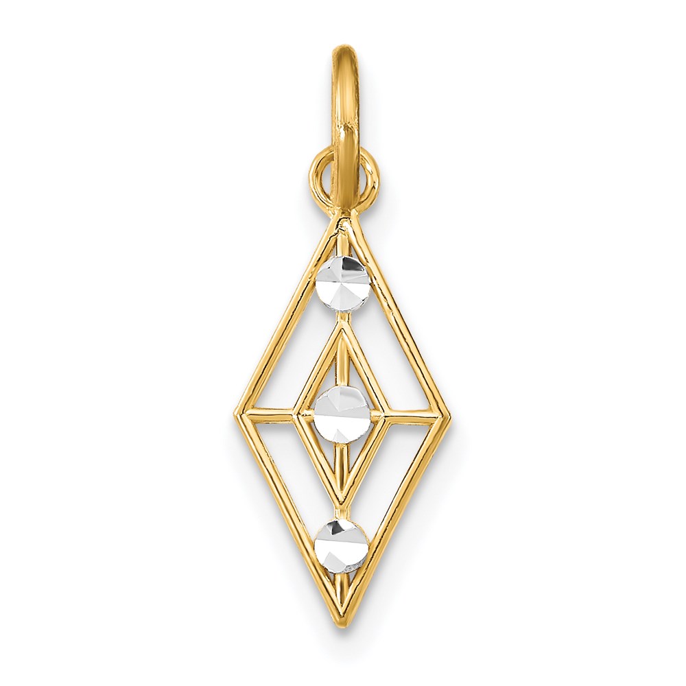14K with White Rhodium Diamond-cut Diamond-Shaped Charm
