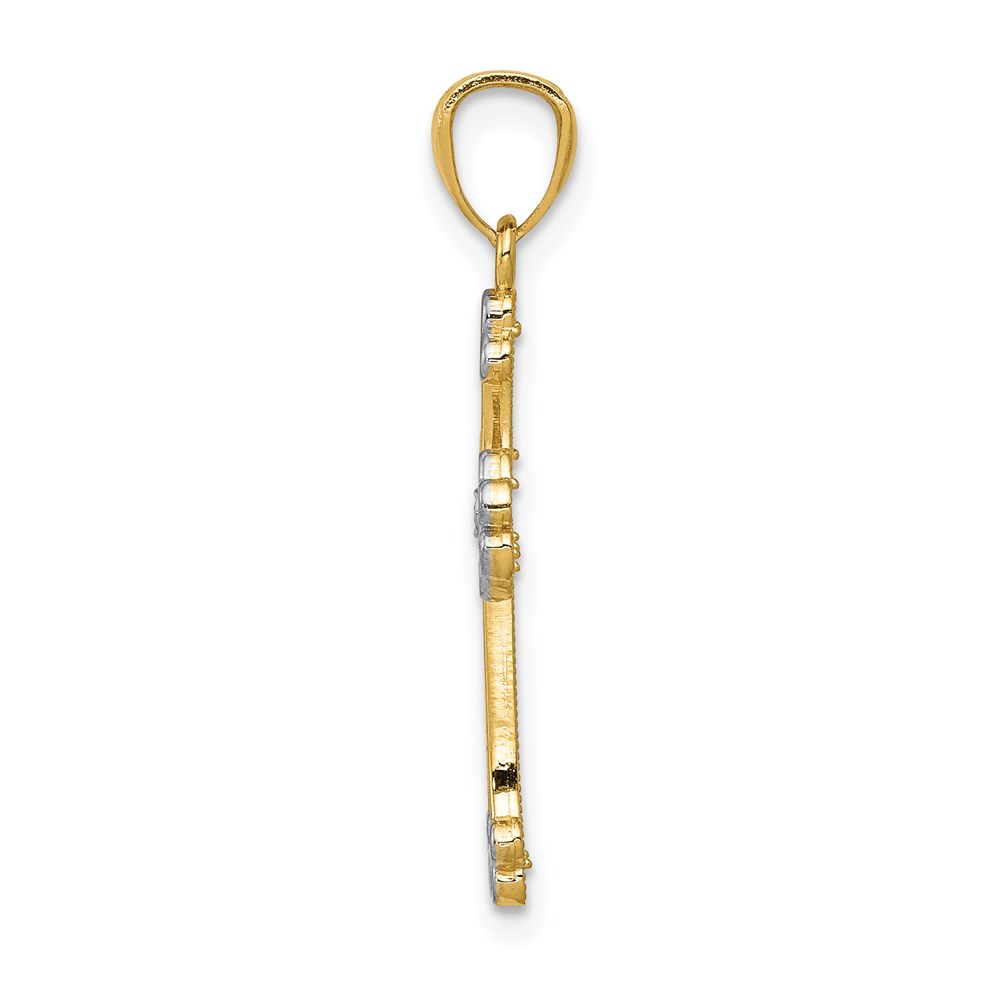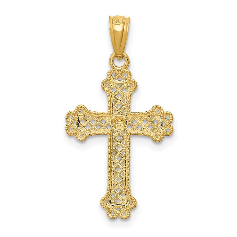 14k with White Rhodium Diamond-cut Filigree Cross Pendant