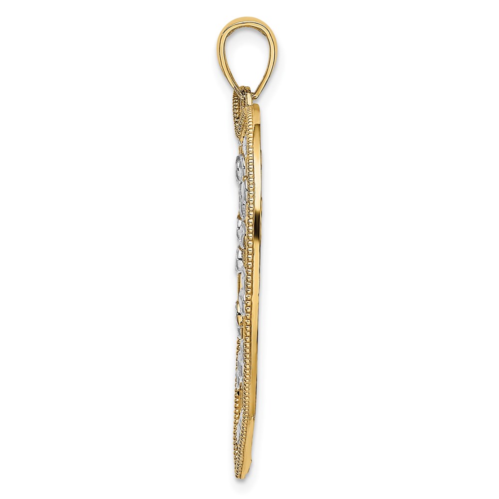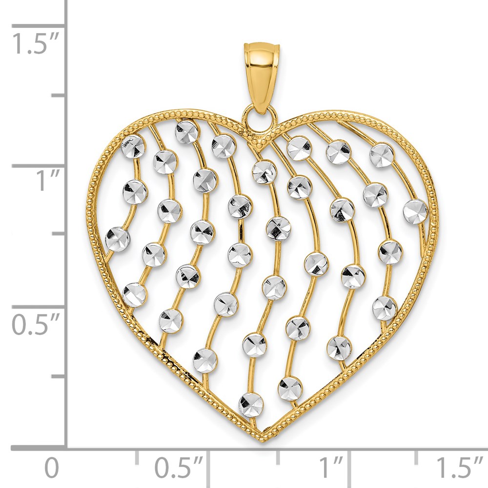 14k with White Rhodium Diamond-cut Large Heart Pendant