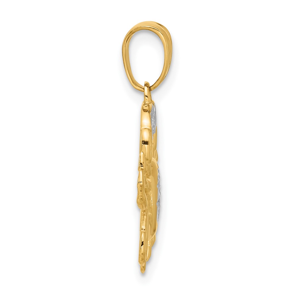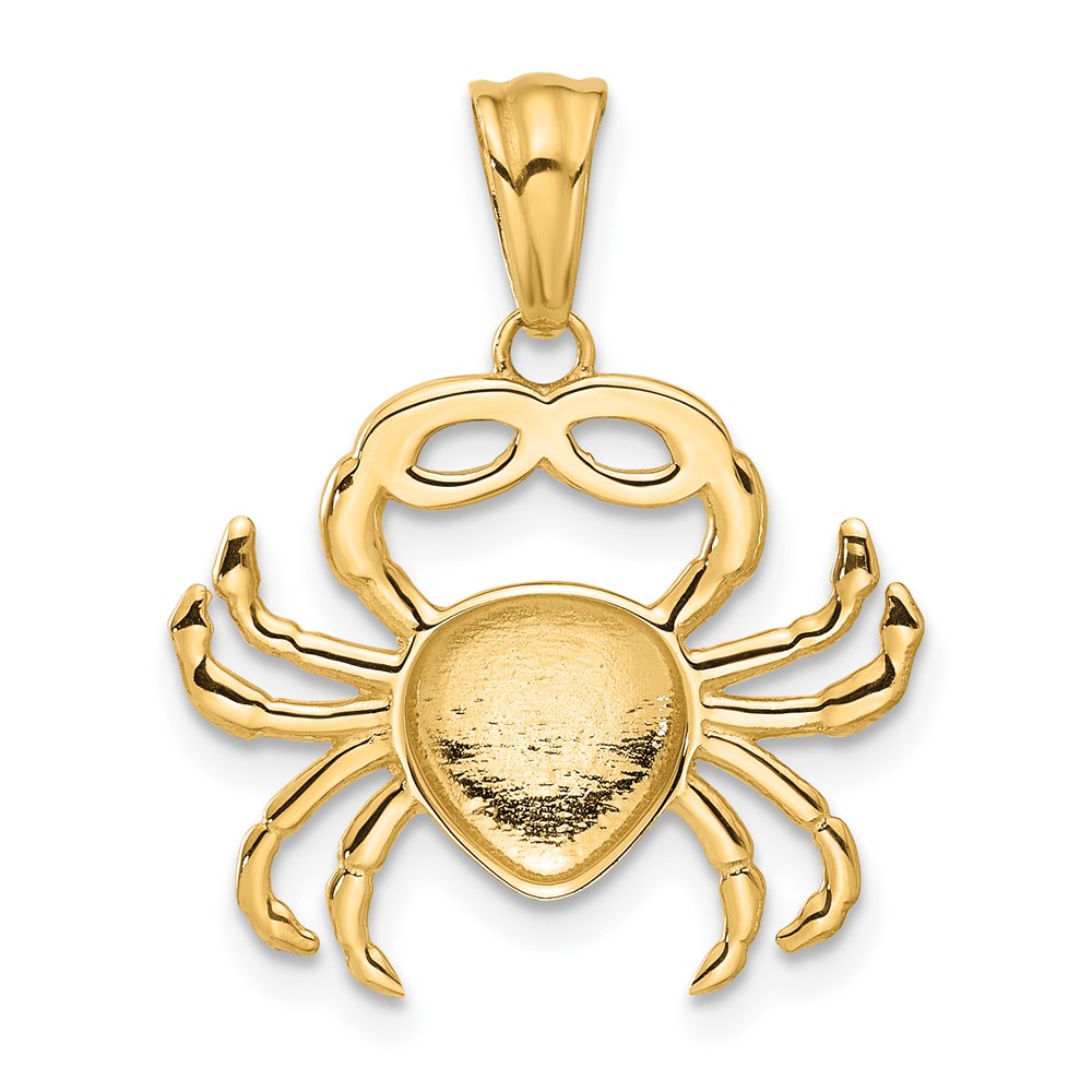 14K with White Rhodium Polished and Diamond Cut Crab Pendant