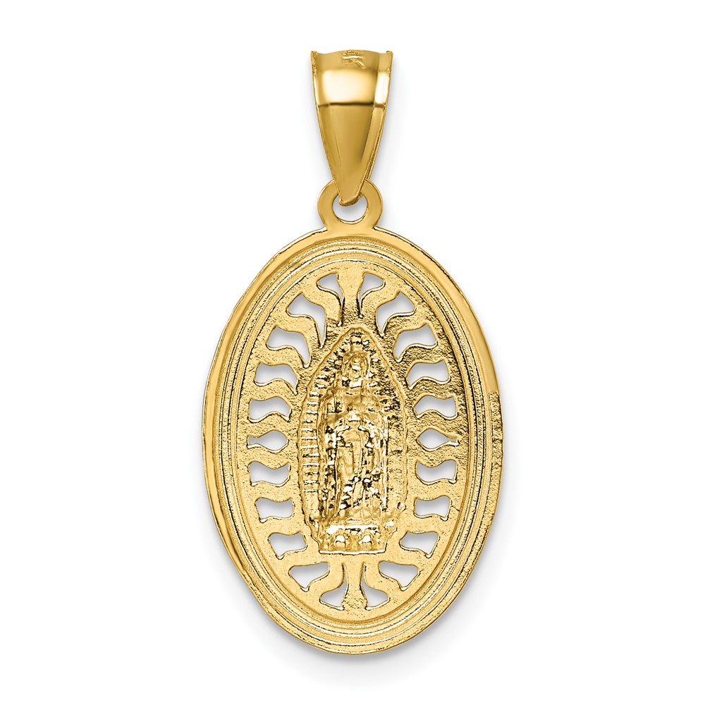 14k with White Rhodium Polished Diamond-cut Pierced Design Our Lady of Guadalupe Pendant
