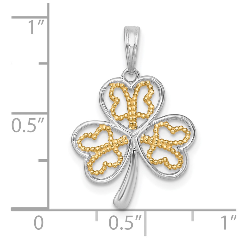 14k with White Rhodium Polished Fancy 3-Leaf Clover Charm