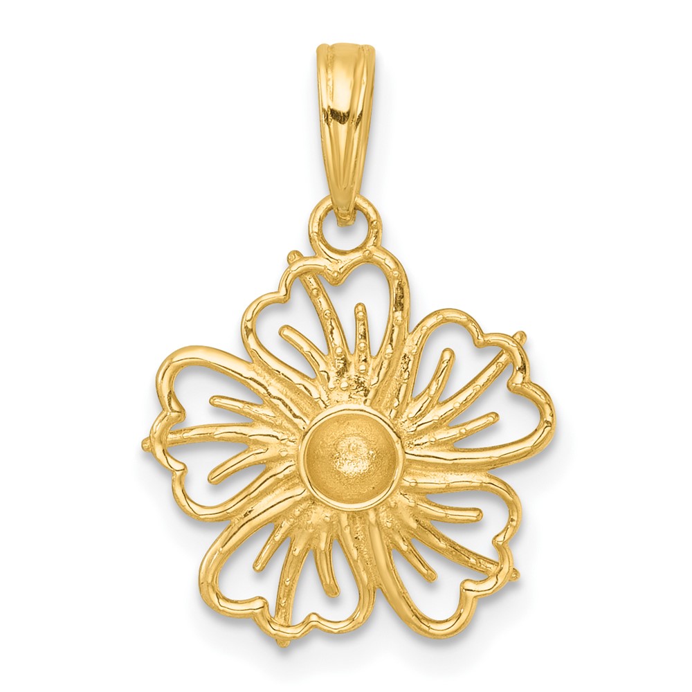 14k with White Rhodium Polished Fancy Pierced Flower Charm