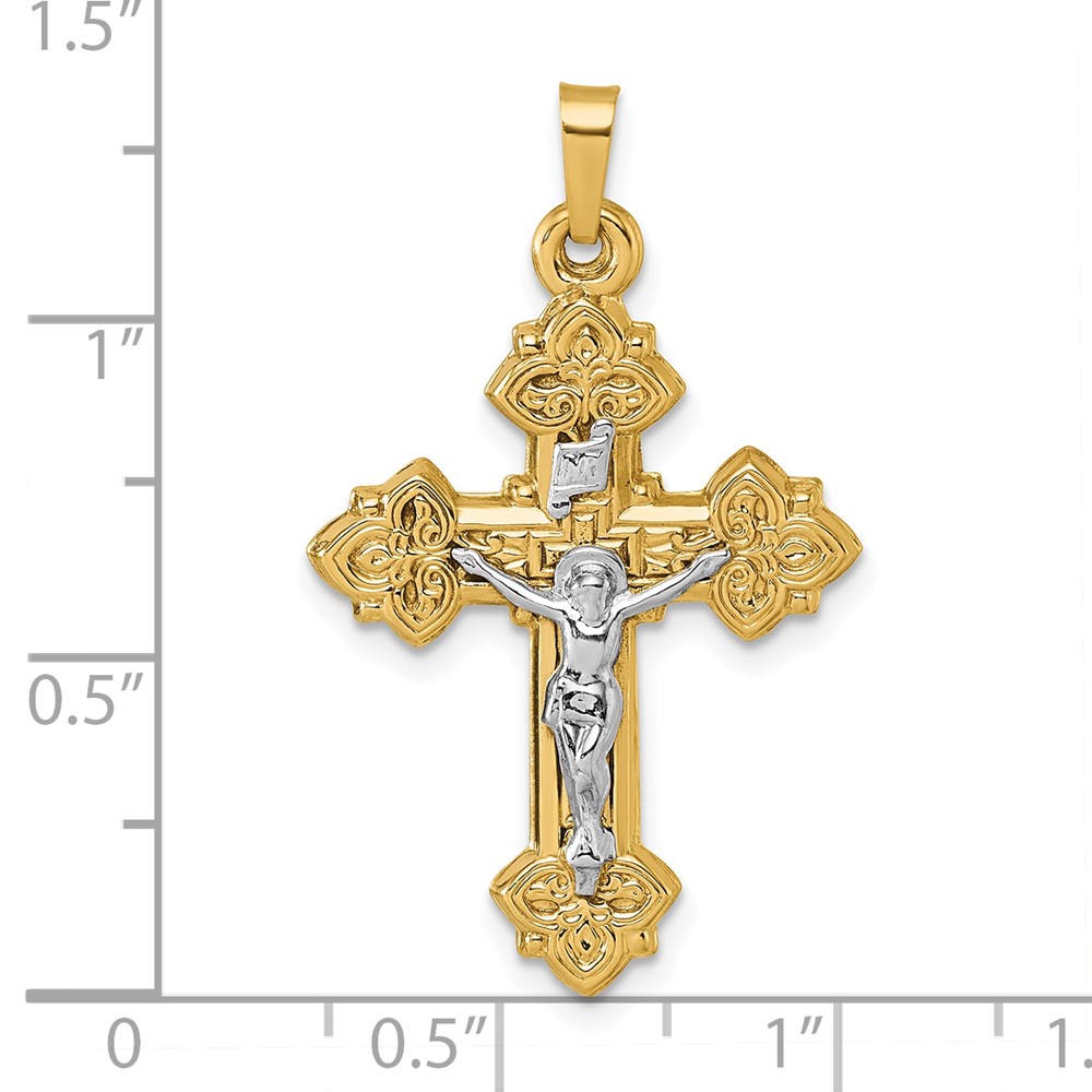 14k with White Rhodium Polished Fleur de Lis INRI Crucifix Cross Pendant
