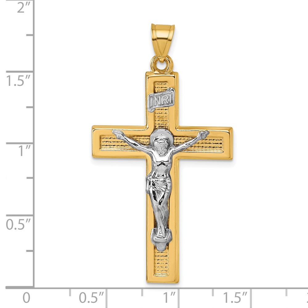 14k with White Rhodium Polished INRI Crucifix Cross Pendant