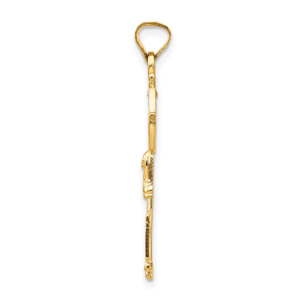 14k Polished Satin and Diamond-cut Crucifix Pendant