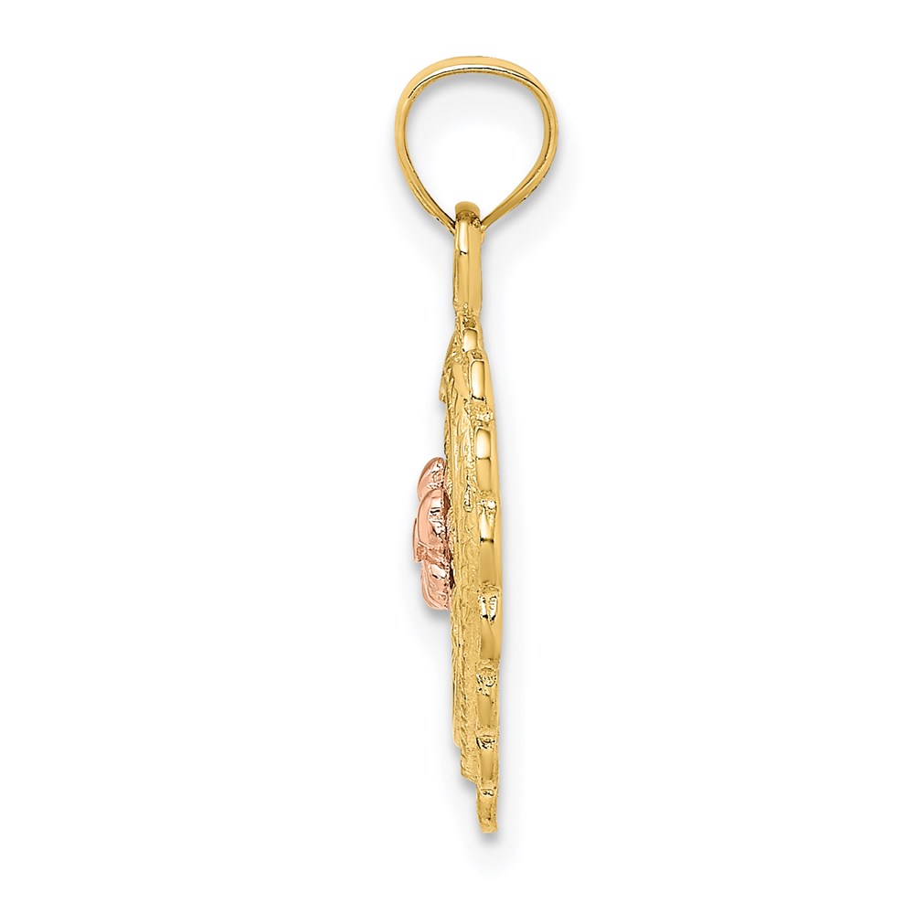14k Yellow and Rose Gold Flower In Heart Basket Charm