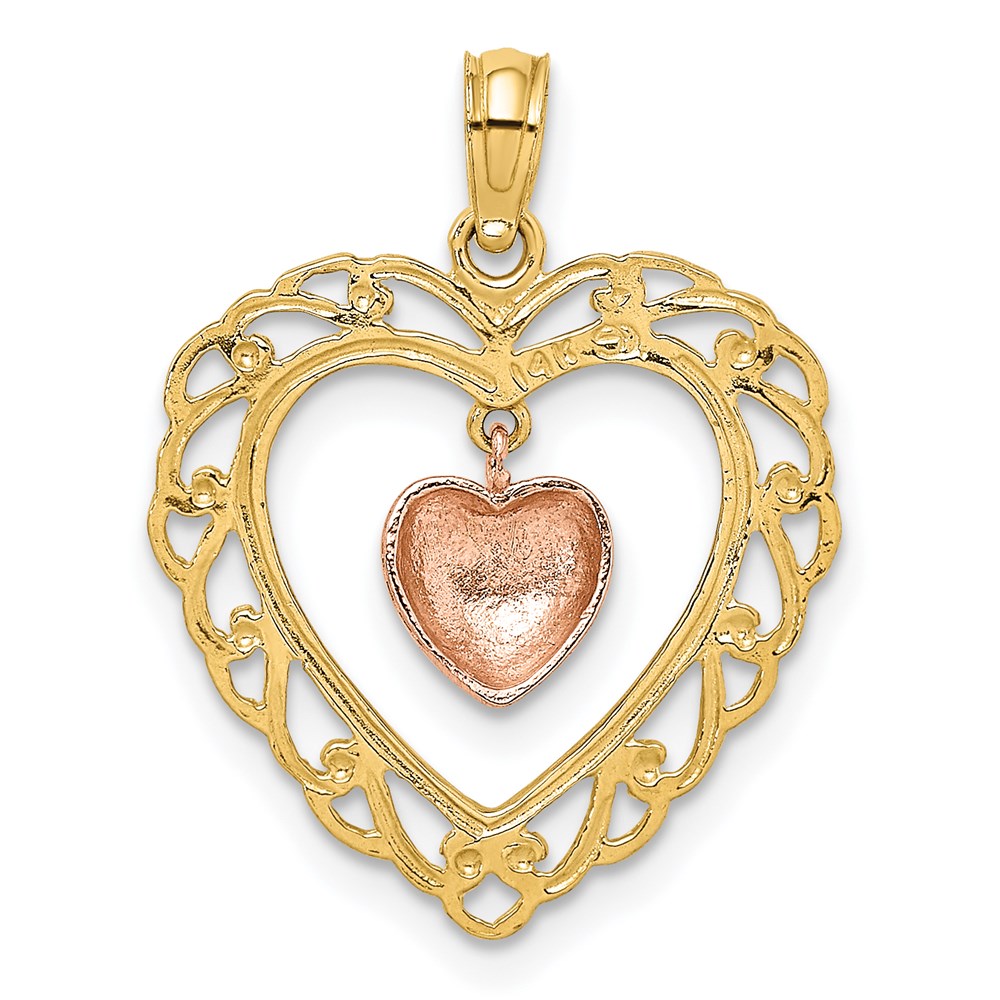 14k Yellow and Rose Polished Dangling Heart In Heart Charm