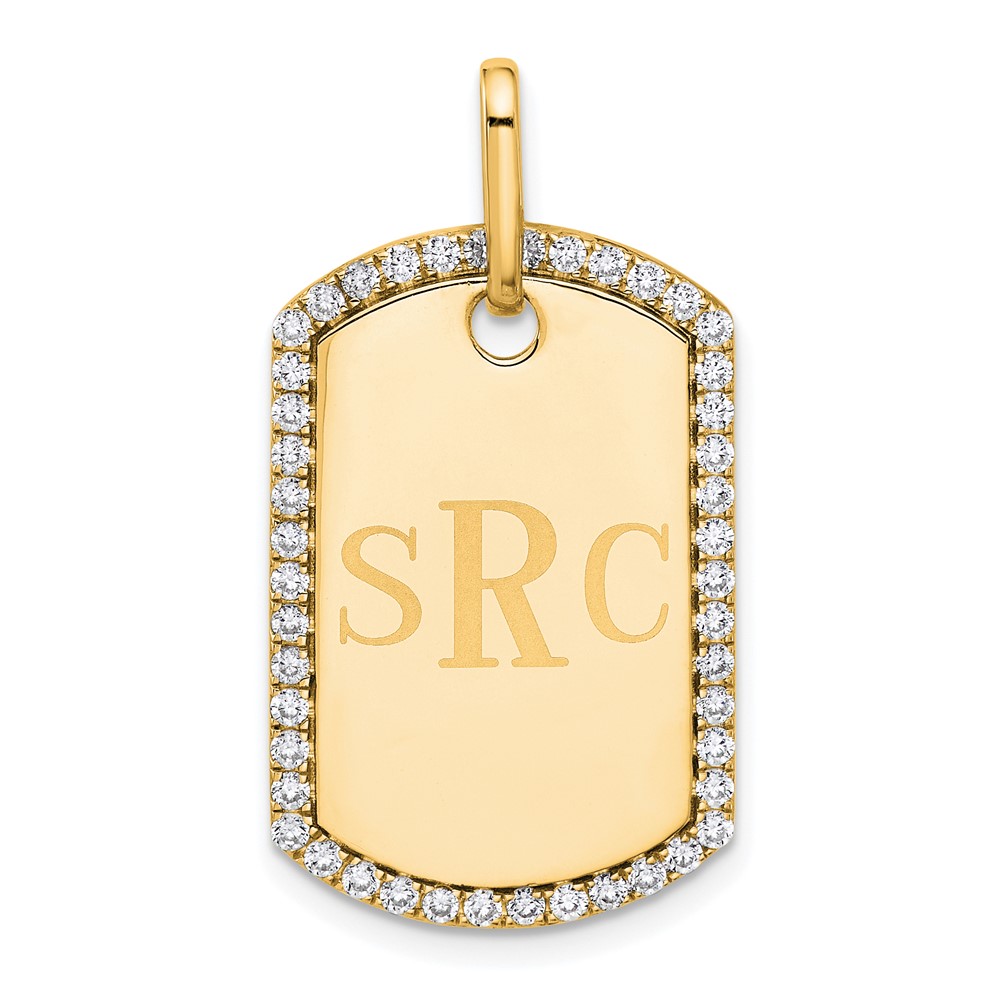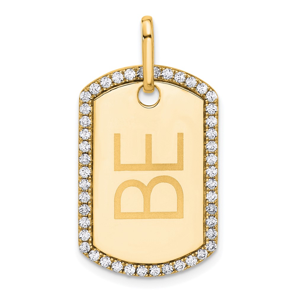 14k Yellow Gold Personalized Diamond Dog Tag Charm