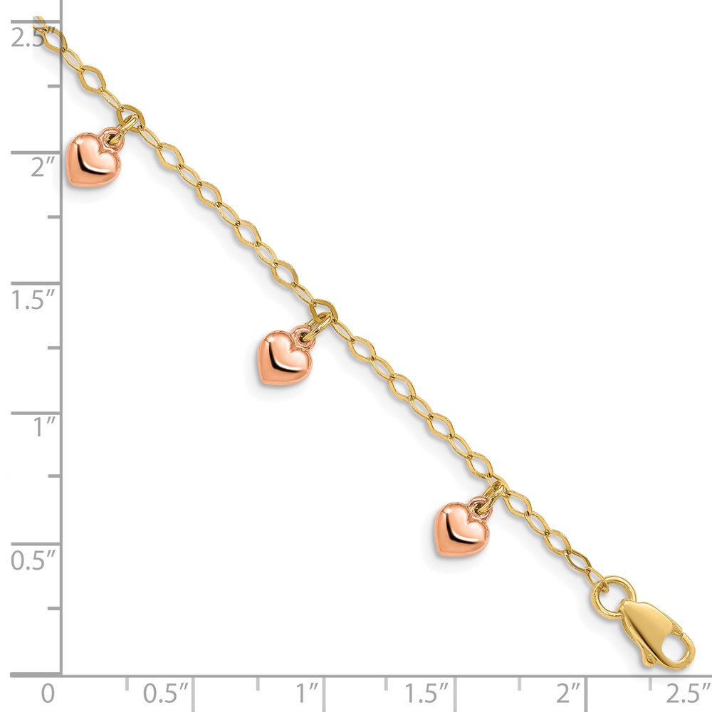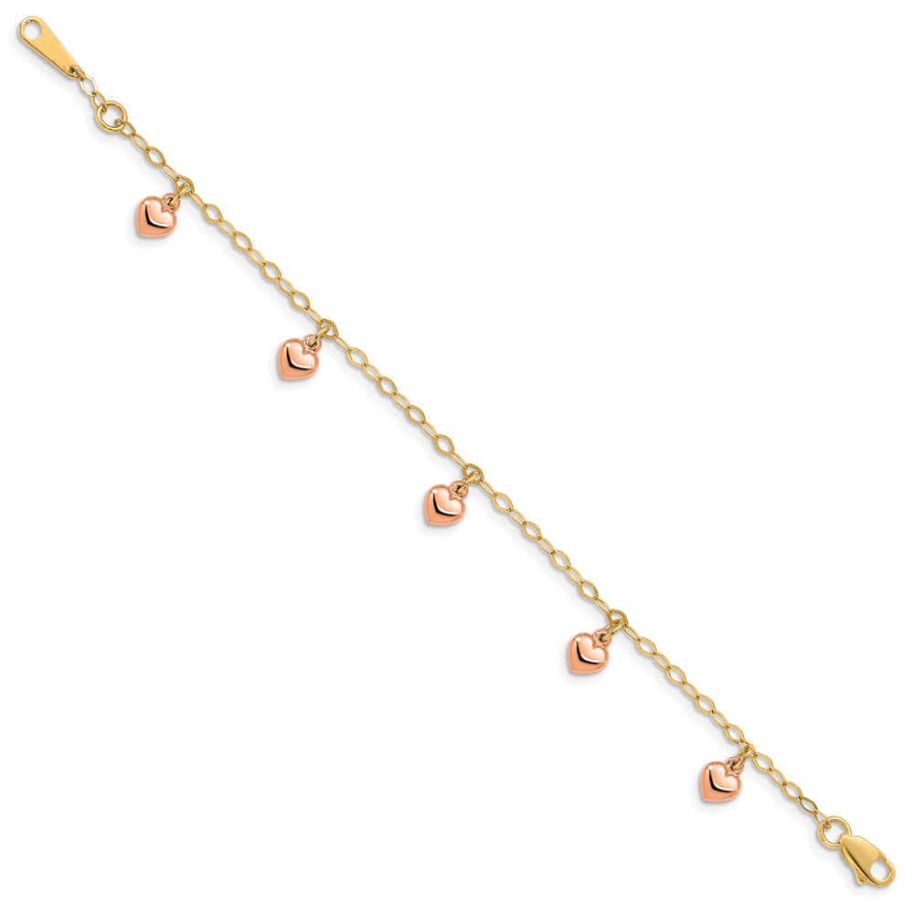 14K Yellow Gold with Rose Gold Hearts Child’s Puffed Heart Charm Bracelet