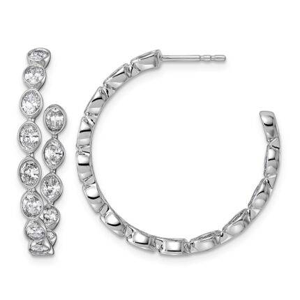 14k White Gold 4 carat Lab Grown Diamond VS/SI+ G+ Princess Complete In and Out Hoop Earrings