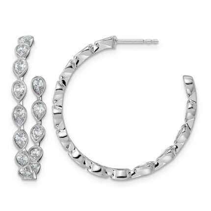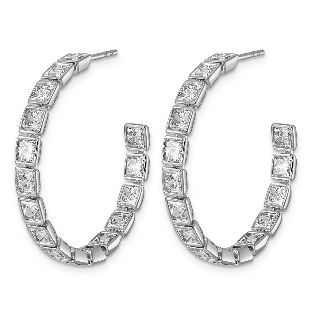 14k White Gold 4 carat Lab Grown Diamond VS/SI+ G+ Princess Complete In and Out Hoop Earrings