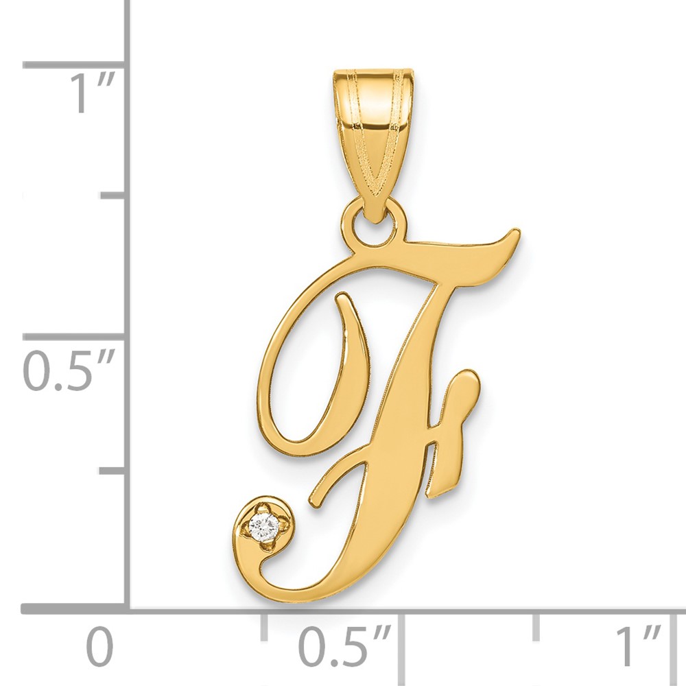 14KY Script Letter F Initial Pendant with Diamond