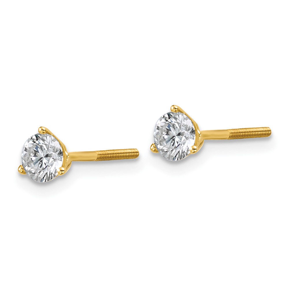 18k 3/4 carat Certified Lab Grown Diamond VS+ F+ Round Complete Three Prong Screwback Stud Earrings