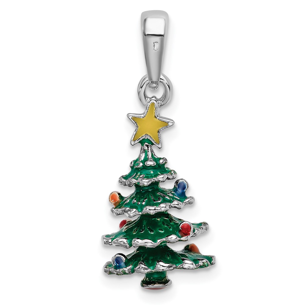 De-Ani Sterling Silver Rhodium-Plated 3D Enameled Christmas Tree Pendant