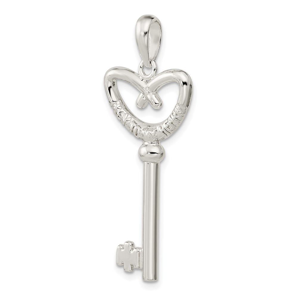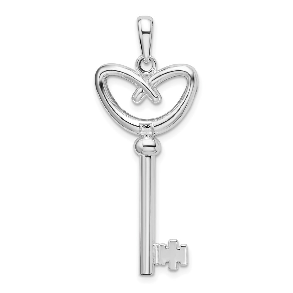 De-Ani Sterling Silver Rhodium-Plated 3D Key to My Heart Pretzel Top Key Pendant